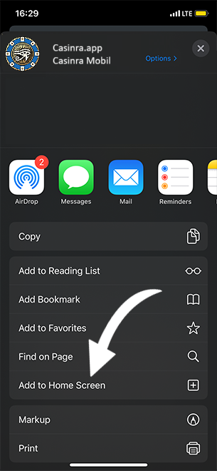 Alt simge satırında, Ana Ekrana Ekle'yi görene kadar aşağıya kaydırın ve ona dokunun.